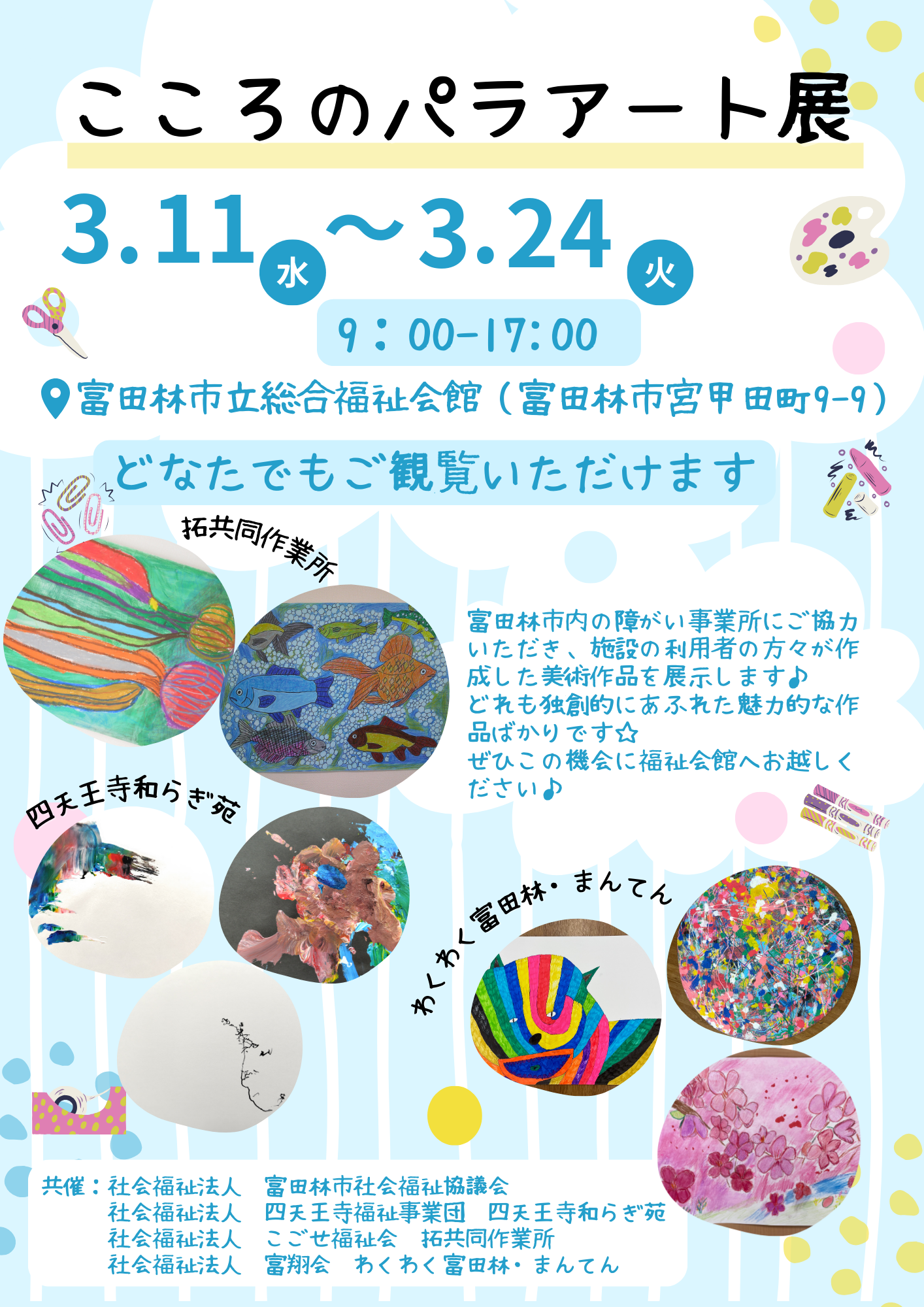 総合福祉会館にて、令和8年3月11日(水)~3月24日(火)「こころのパラアート展」を開催いたします☆