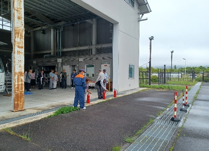 まずは、施設紹介や災害への備えをVTRでお勉強。屋外に移動し、起震車に乗車、過去に発生した地震の揺れを体験。阪神・淡路大震災と東日本大震災との揺れ方は随分と違いました。その後、消火器取扱いの説明も受け、実際に体験もさせていただきました。
